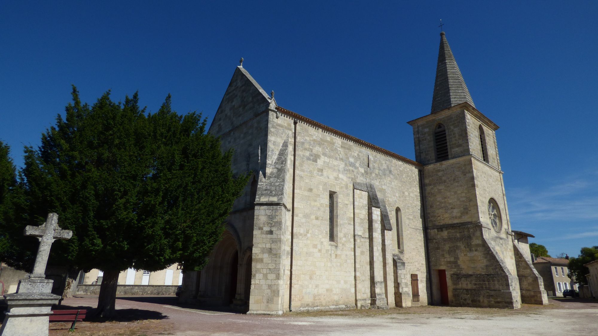 L’église de Berson Saint-Saturnin date du XIIème siècle. Construite à partir de pans de mur appartenant à la chapelle d’un ancien prieuré, il est possible que son clocher primitif se soit trouvé au-dessus de la croisée du transept, à en juger par la présence d’un escalier creusé dans un pilier, à gauche, alors que le clocher actuel, édifié au XVIIIème siècle et refait en 1837, se trouve à droite.